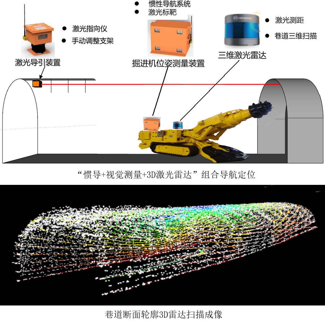 Roadheader Navigation and positioning, using "inertial navigation+ visual measurement+ 3D lidar";